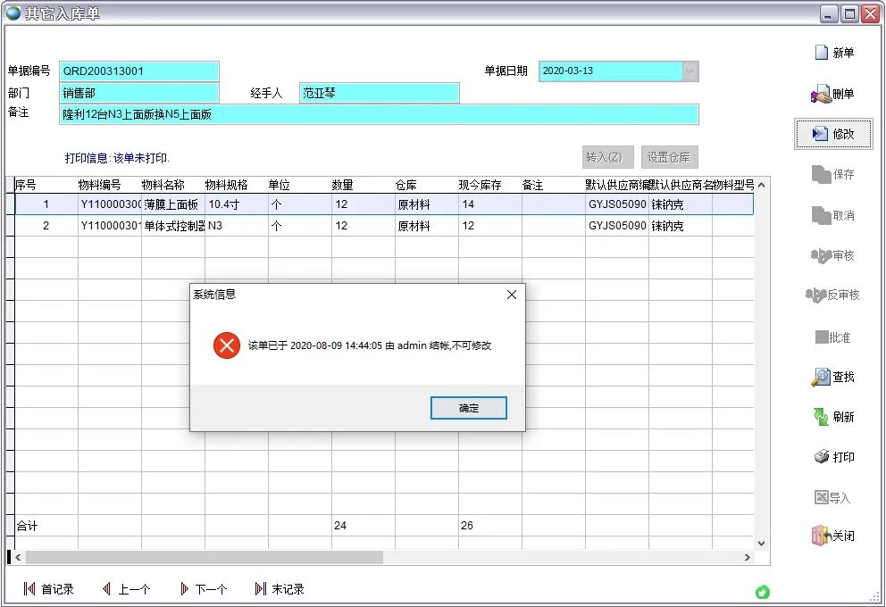 打开路径:【主菜单】->【总账】->【期末处理】->【期末结账】期末结账是关闭出入库单据、采购发票、采购付款单、销售发票、销售付款单的录入、修改、删除操作。以保证采购、销售、仓库模块数据与总账数据的一致性。结账后修改单据会得到如下提示结账与记账结账和记帐都能关闭单据的修改、删除操作。区别在于,本期结账后无法再新建本期的...