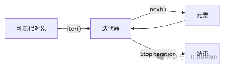 知识导图1.迭代协议1.1核心概念迭代协议是Python中用于支持循环和迭代的底层机制,由两个核心组件组成:可迭代对象(Iterable):实现了__iter__()方法的对象迭代器(Iterator):实现了__iter__()和__next__()方法的对象1.2可迭代对象vs迭代器特性可迭代对象迭代器核心方法__...