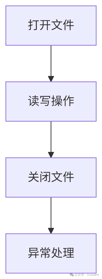 1.文件操作基础1.1文件操作基本流程文件操作遵循打开-操作-关闭流程:打开文件:创建文件对象,建立程序与文件的连接通道读写操作:执行实际的数据传输关闭文件:释放系统资源,确保数据完整性异常处理:处理可能出现的文件不存在、权限不足等错误主要注意事项:文件操作完成后必须关闭,否则可能导致数据丢失或资源泄漏使用try-fi...
