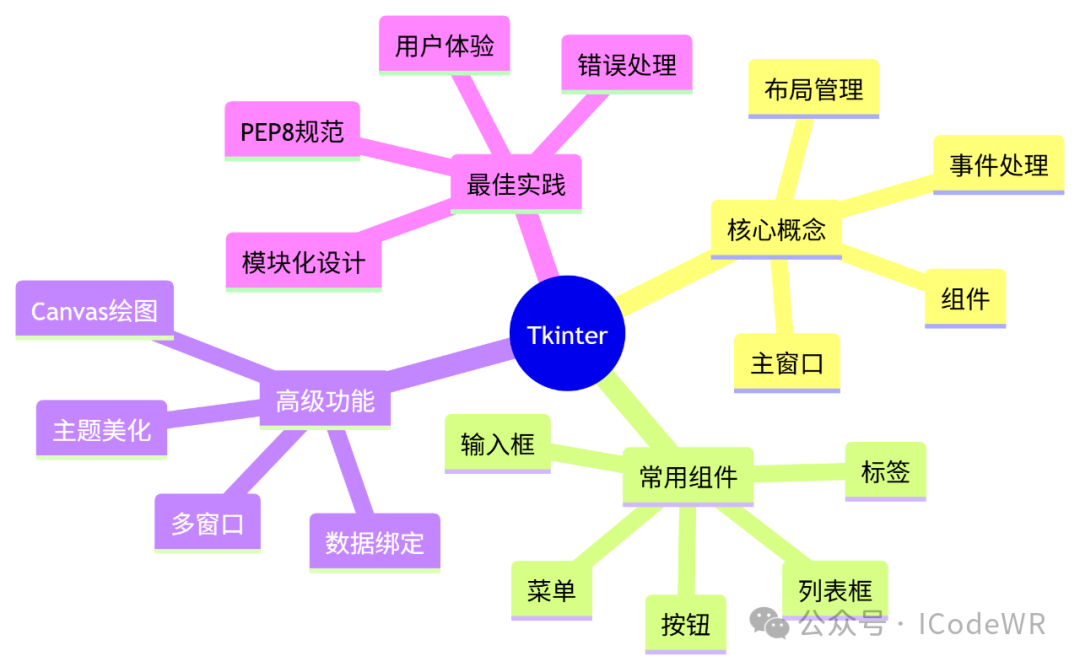 一、概述与学习路线图1.1图形化编程简介图形用户界面(GUI)编程允许开发者创建可视化应用程序,通过窗口、按钮、菜单等控件与用户交互。Python提供了多个GUI库,其中最常用的是Tkinter(标准库)、PyQt、wxPython等。1.2Tkinter学习路线图二、Tkinter基础知识2.1Tkinter基本结构...