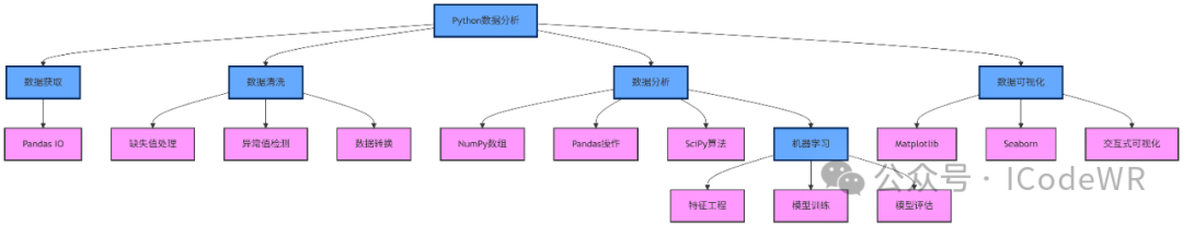 1.数据分析简介1.1数据分析流程数据分析是一个系统化过程,遵循以下关键步骤:数据采集:从数据库、API、文件或网络获取原始数据数据清洗:处理缺失值、异常值、重复数据和不一致格式数据分析:应用统计方法和算法提取有价值信息数据可视化:使用图表展示数据模式和关系报告生成:总结发现并提出行动建议1.2Python数据分析工具...