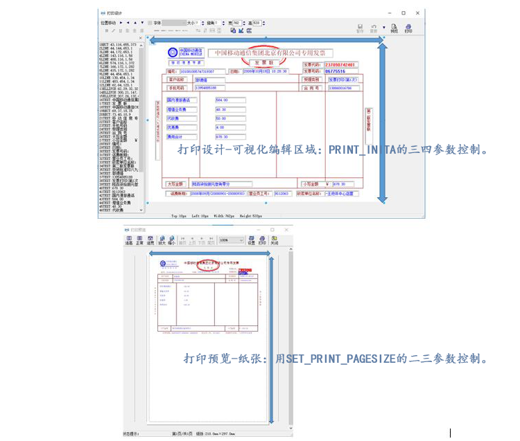 打印设计的可视化编辑区域大小,用PRINT_INITA的三四参数进行设置。和纸张无关。