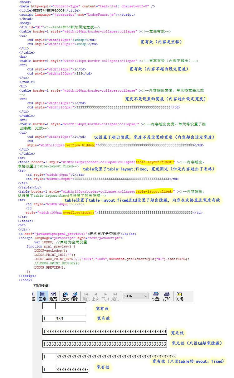 LODOP中WEB页面打印设计table表格宽度固定-超宽隐藏