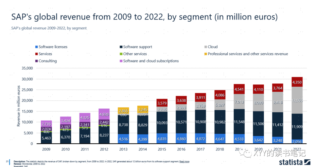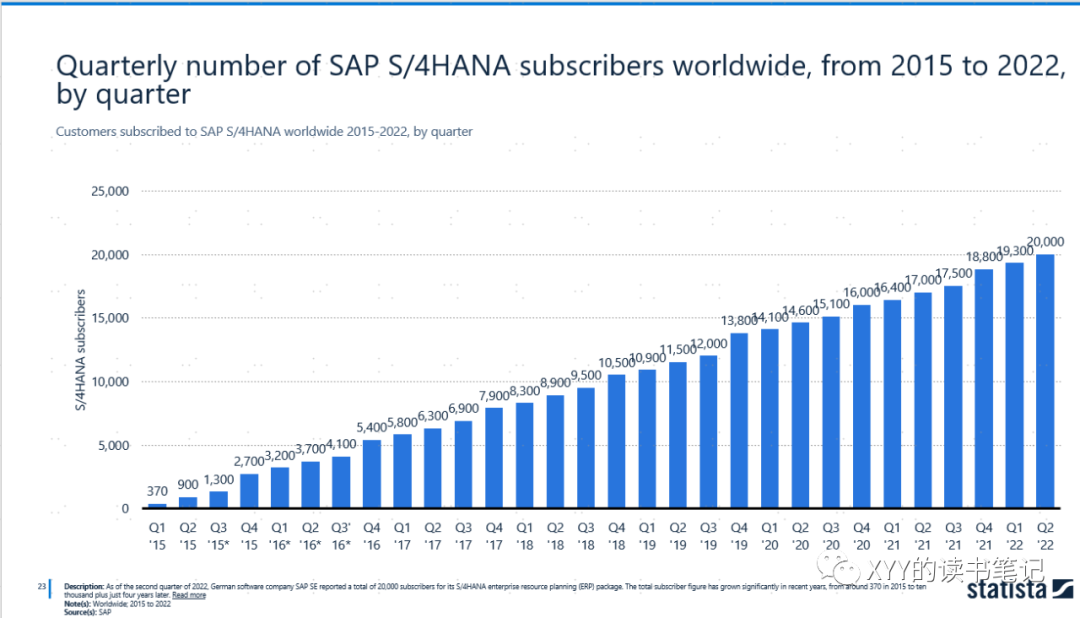 前言&书籍:SAP开创企业管理软件的先河,其公司名称也基本上是ERP软件的同义词。与大多数软件龙头企业出自美国不同,SAP创立于德国,其凭借先进、可靠的产品成为全球ERP龙头。本篇,我们基于《Inside the Secret Software Power》 by Gerd Meissner来了解低调的SAP前世今生。 来自IBM五位联合创始人 IBM时代和SAP的五位创始人。基于对早期商用计算垄断,IBM是现代企业服务模式的鼻祖。在1960年代之前,IBM的计算机都是软硬件一体化模式,软件更多是客户购买计算机附送的产品功能。然而,1969年,反垄断压力下,IBM被要求停止捆绑软件销售,催生了整个软件产业。到1972年,计算机这个词几乎等同于IBM360系列大型商用计算,当时美国在用的计算机数量超过8万台,但是在德国这个数量只有十分之一。 Claus Wellenreuther当时已经是IBM一位中高层的领导,他开着保时捷,总是穿着西服,他的专业是企业的会计软件,他为IBM开发记账系统就是以他个人名字命名。1971年,IBM准备将会计软件部门集中,Wellenreuther被认为是最有可能的负责人,但是却没有如愿。1971年他离开IBM准备创业,他的决定影响了两位年轻人,Deitmar Hopp和Hasso Plattner。 Dietmar Hopp当时是IBM一位程序员,他主要聚焦Dialog Programming——当时计算机主要在晚上运行程序,白天则进行其他计算工作。而Dialog Programming则可以让计算机实时响应编程指令,在当时也算高科技了。当时,Hopp会走访很多IBM的客户,帮助他们部署会计、流程等管理软件,他发现大多数企业面对的是类似的需求和问题,因此面对这些企业管理软件需求开发一款标准化的软件产品肯定有市场。 Hasso Plattner在IBM专业是Teleprocessing,其主要概念是基于电话线不同计算机可以互相传输数据(类似互联网概念)。此外,他还帮助公司针对ICI客户需求开发订单管理(Order Processing)和企业出差管理系统(Traveling Software)软件。Hopp和Plattner认为在IBM限制了他们的想法,所以他们准备出来自己干,他们有信心说服Wellenreuther跟他们一起干,后者确实答应了。 Klaus Tschira和Hans-Werner Hector。前者是操作系统专家,能够帮助软件处理不同操作系统适配问题,此外他后来还帮SAP开发了HR管理软件核心部分。Hector则熟悉会计软件、生产计划等软件产品。 R1系统开发完成,实时分析成为优势。1972年,5位创始人就位,公司正式成立,名称为System Analysis,Program Development,简称SAP。当时商用大型机售价高昂,SAP就说服自己的客户使用他们的计算机为他们开发软件。1973年,SAP第一款企业管理软件R1开发完成,实时的数据输入、分析和管理成为核心亮点,其中R的意思就是Real time data processing。实际上,在R1出来之前,企业数据管理都是先收集存储数据,然后在特定时间才能一起处理(晚上商用机才能跑程序),具有滞后效应。后者带来了很多问题,比如库存无法实时管理,经常面临紧急缺货。实时数据处理使得企业收集和处理数据工种合并,传统数据收集需要专门输入人员,然后统一专门分析人员。然而实时数据分析功能是的企业任何数据依次输入即可进行分析,能够节省很多人力成本(替代工人)。由于SAP布局对就业的负面影响,使得公司一开始就很低调。此外,SAP的R1前瞻性布局了IBM 370新型主机,这样等新型机器出来后,SAP拥有更强的兼容性。此外,SAP还发布了ABAP/4编程语言,其能够给予特定指令生成分析报告。基于每一次客户的订单,SAP都在不断迭代更新产品,1980年,公司终于采购自己第一台西门子的商用计算机。 R2和R3:SAP成为企业管理软件之王 R/2软件——全流程企业管理软件。1977年,SAP总部搬迁到德国Walldorf,1980年,SAP是德国TOP20软件公司中排名第17,TOP100德国公司里面有50家是SAP的客户。1982年,公司营收1000万美元,低调的SAP在不断积累客户的口碑。1978年,公司开始研发R/2,其特点是能够覆盖企业客户所有管理的流程,R/2目标硬件仍然是IBM的商用大型机,但是其基于Basic System进行编程,可以兼容包括西门子在内其他大型机产品。1981年,R/2开发完毕,崭新的软件包含10大模块:RA(固定资产会计),RF(会计),RK(成本会计),RK-P(项目管理),RM(设备维护),RM-Mat(材料和流程管理),RM-PPS(生产计划),RM-QSS(质量管理),RP(人力资源管理),RV(销售,物流,发票等)。R/2很强大,但是也很复杂,对于企业来说布局落地R/2是费时费钱——布局整个系统需要惊人的6-8年,且由于懂系统布局的专业人员稀缺,布局成本费用高昂。不过,由于其为企业带来从0到1数字化管理的可能性,仍然受到诸多大企业客户的欢迎,直到1997年,R/2系统仍然有1400家公司客户,SAP也不断更新版本。1980年,SAP一件大事是联合创始人Wellenreuther由于患病离开了公司。 进军国际市场。SAP的国际化离不开其企业客户本身的国际化。1978年,一家美国农业设备制造商John Deere决定在欧洲和非洲分部采用SAP的会计软件,其甚至自己将产品翻译成法语,因此其也成为最早将SAP产品进行国际化的企业客户。1984年,SAP海外分公司成立,由于R/2兼容西门子的商用计算机,因此西门子也成为SAP产品国际化背后助推。1987年,SAP在海外建设第一个国际培训中心,在欧洲美国等地不断开设办公室。1991年进军日本市场。此外,1988年SAP在德国上市。 R/3——最强企业管理软件。1987年,SAP开始着手开发R/3,相比于R/2,其最大的变化是R/3不是基于大型商用机,而是顺应了工作站(Workstation),PC等新型基于服务器硬件模式。实际上,进入1980年代,IBM的传统优势被两股势