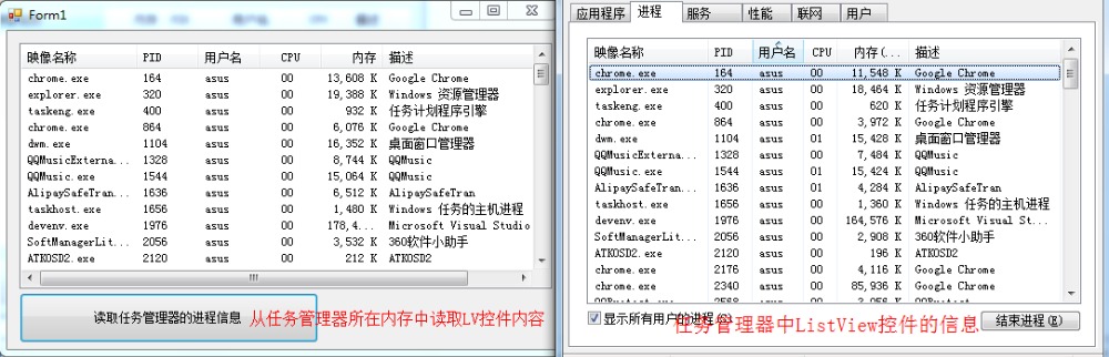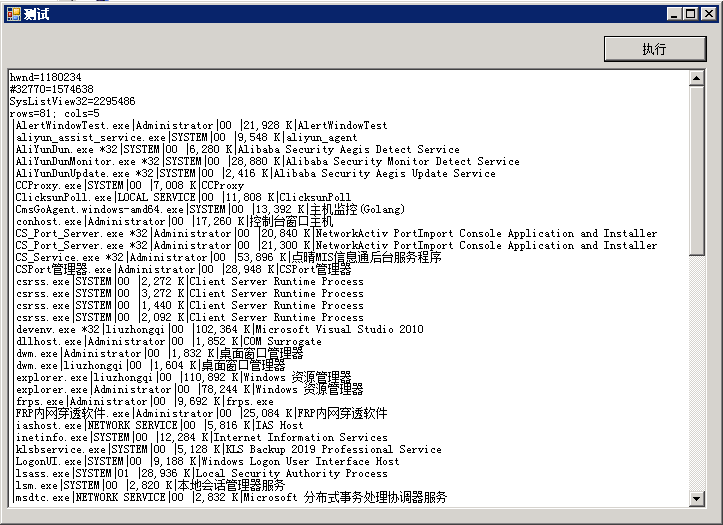 此代码可以将任务管理器中的进程都抓取出来。