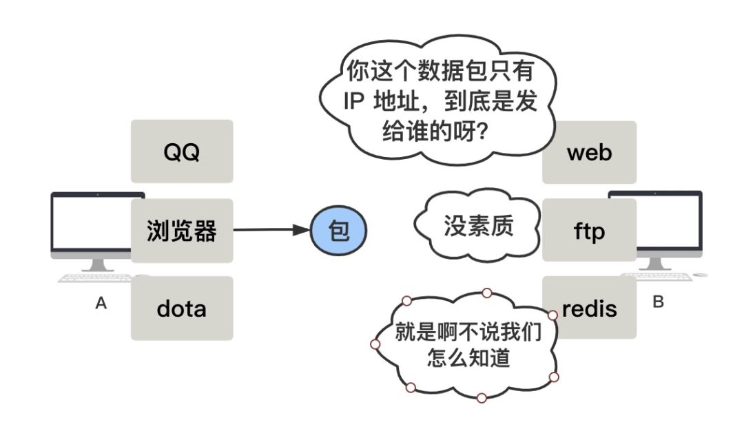 直到有一天,你希望与另一台电脑 B 建立通信,于是你们各开了一个网口,用一根网线连接了起来。