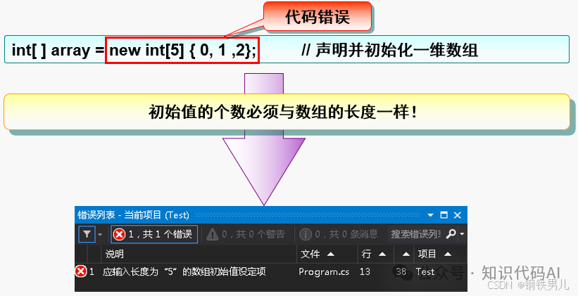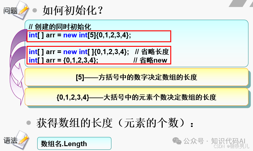 int[ ] array = new int[5] { 0, 1 ,2, 3, 4};  // 声明并初始化一维数组