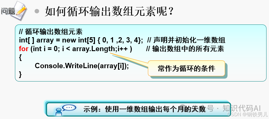 foreach (int i in array )       // 输出一维数组中的所有元素