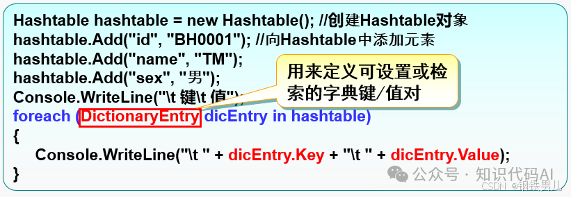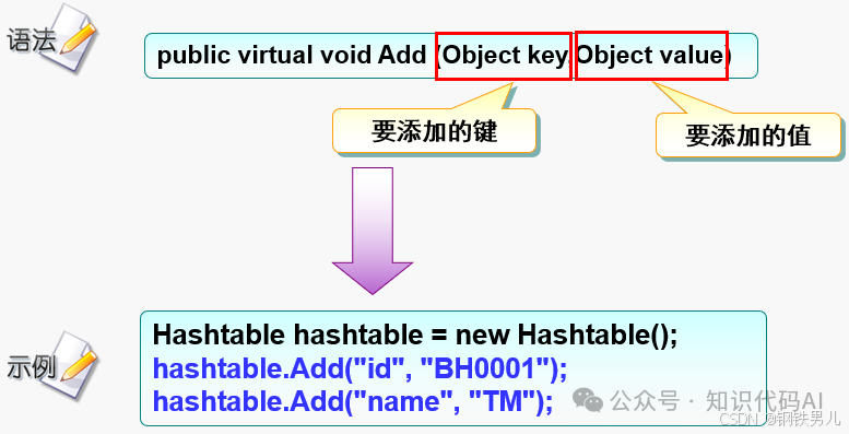 hashtable.Add("id", "BH0001"); //向Hashtable中添加元素