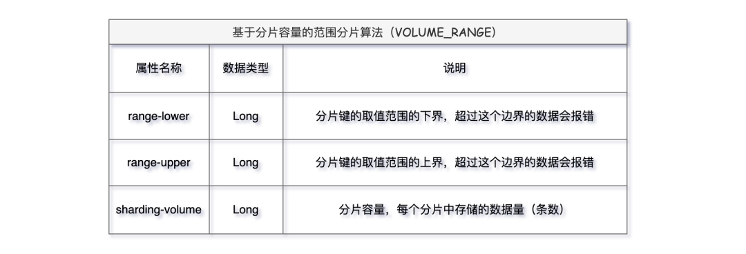 基于分片容量的范围分片算法,依据数据容量来均匀分布到分片表中。
