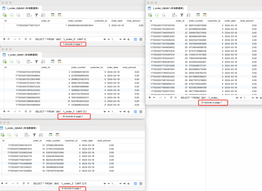 // 1%3 = 1 所以放入 db0.t_order_1 分片表
