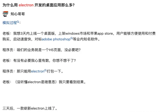 但是,随着时间的推移,直到2024年的今天,商家客服的入驻量和使用用户越来越多,用户的电脑配置也是参差不齐,Electron的弊端开始显现: