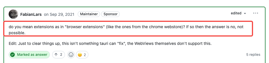 在遇到这些问题时,真的特别让人头大,因为社区几乎没有这些问题的答案,需要我们自己去翻Tauri的源码实现,有些是涉及到操作系统底层的一些API,因此我们必须要去看一些操作系统的API介绍和出入参说明,才能更好的理解Tauri的代码实现意图,才能解决我们碰到的这些问题。