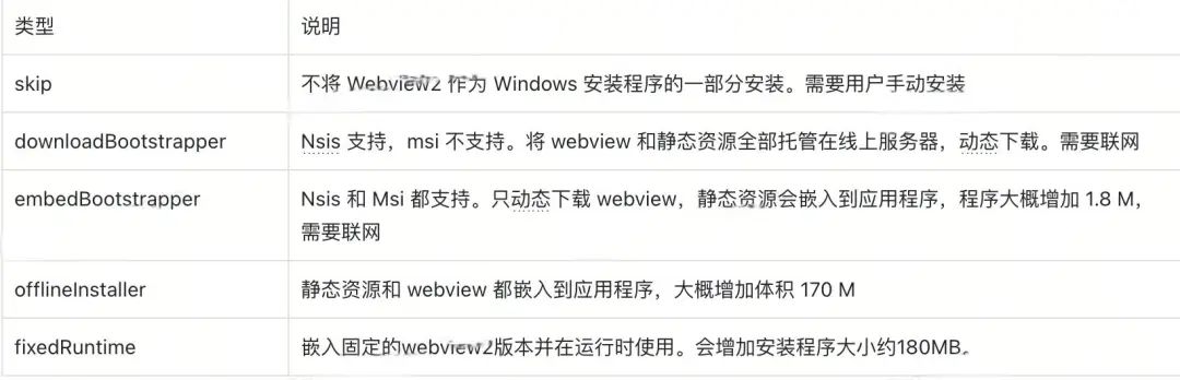 对于这种情况,我们虽然可以将Webview2内置到安装包里面,在用户安装的时候进行内置解压安装,但是这样包体积就跟Electron相差不大。
