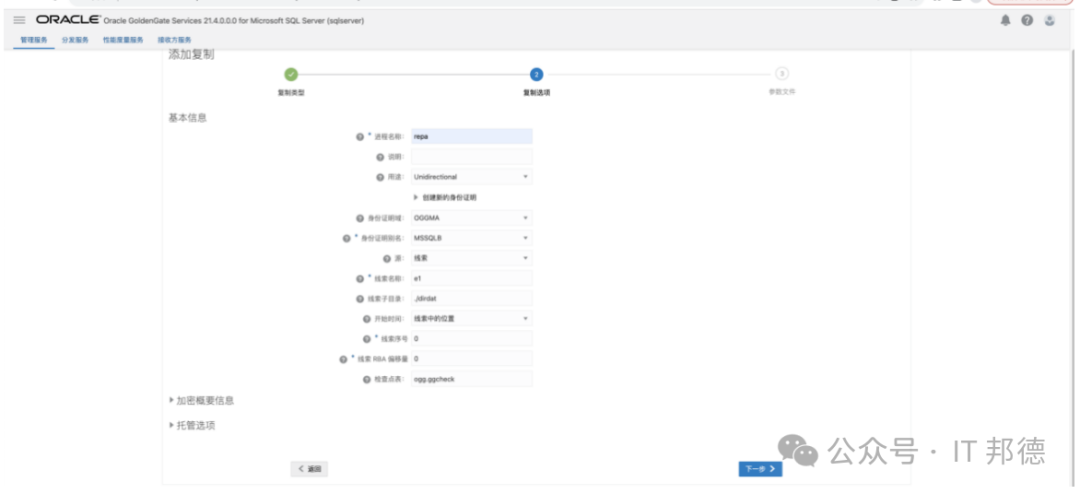 监听主机选择当前安装OGG服务管理的机器本身IP,
