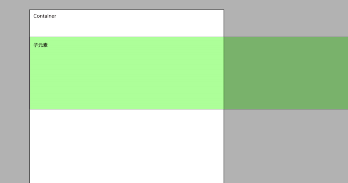最为演示示例,我们假定页面中有一个 div 作为数据显示的容器(container),container 内有一个子元素(div),子元素的宽度大于container,我们设置container 的css 样式:overflow: hidden; 如下图: