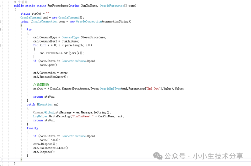 public static string RunProcedures(string CunChuName, OracleParameter[] parm)