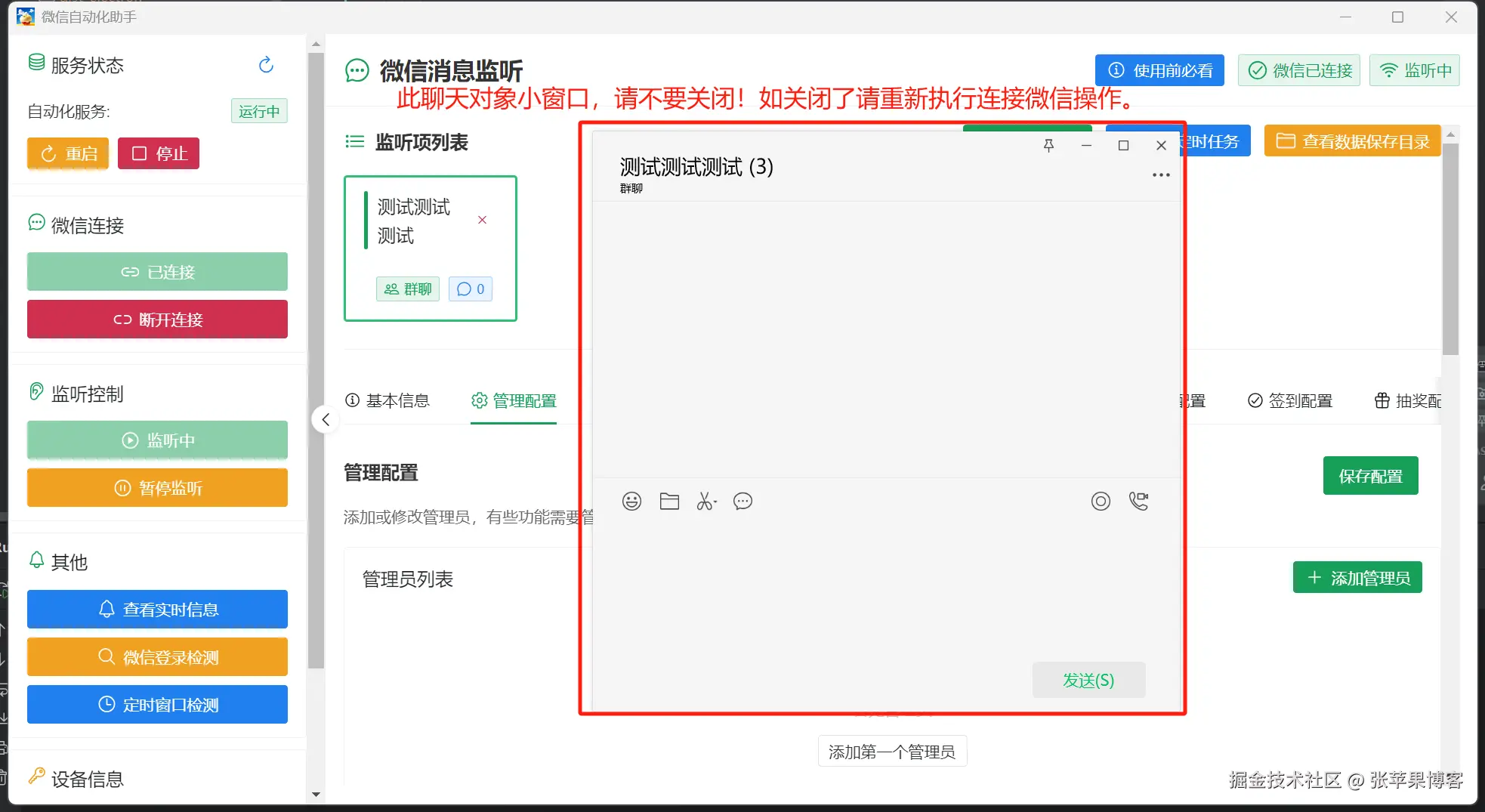 ⚠️ 重要:千万不要关闭这个小窗口!关了就无法监听消息,请重新启动服务器!