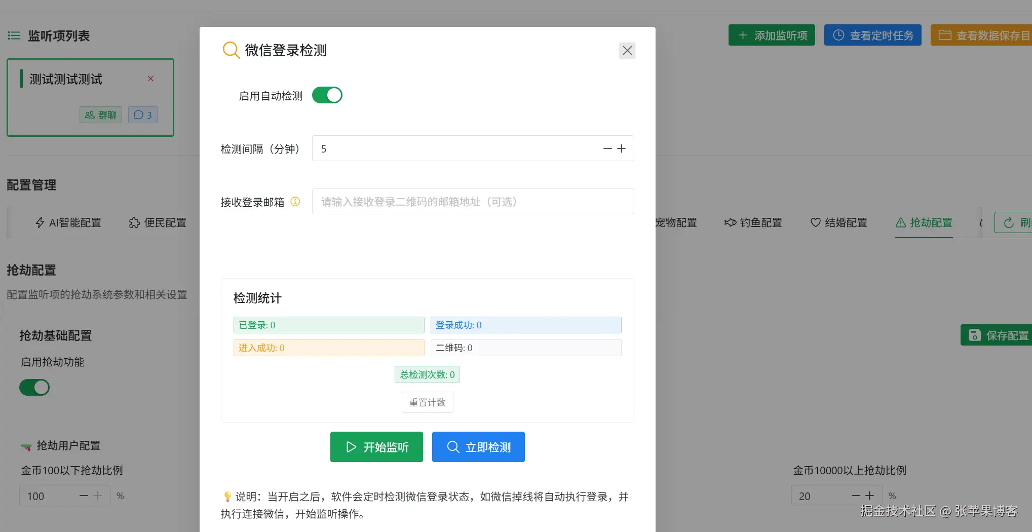 !!! success 提示:当开启掉线检测等功能之后,经过测试,微信连续挂机一周之后还能正常发送消息。 !!!