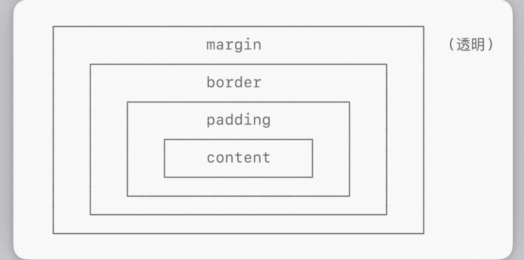 每个HTML元素都是矩形盒子,从内到外包含四个层次: