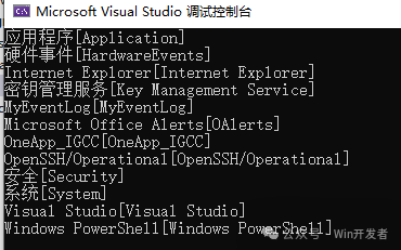 获取日志下的单个记录这里我们以Visual Studio日志为例,输出Visual Studio日志下的所有记录。