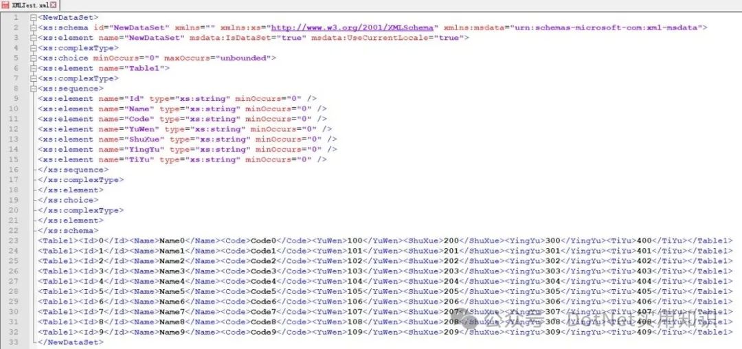 NewStr = NewStr.Replace("><xs", ">\r\n<xs").Replace("></xs", ">\r\n</xs").Replace("schema><Table1", "schema>\r\n<Table1").Replace("Table1><Table1", "Table1>\r\n<Table1").Replace("></NewDataSet", ">\r\n</NewDataSet");