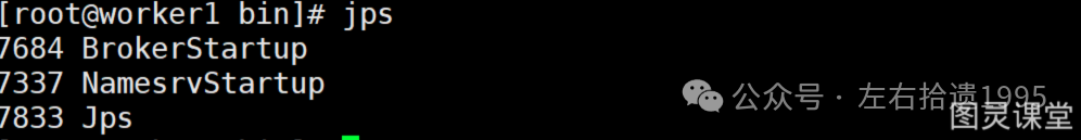 Broker的配置修改完成,然后我们用静默启动的方式启动Broker服务,同样是检查nohup.out日志, 并且jps指令可以看到一个BrokerStartup进程。