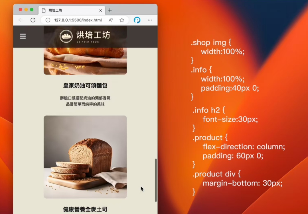⚙️ 适配移动端的4大关键技术 1. width: 100% ◦ 图片/区块横向撑满屏幕 → 避免出现空白或滚动条 ◦ 为什么? 手机屏幕窄,内容必须自动收缩 2. flex-direction: column(核心❗) ◦ 将.product容器内的商品从横排改为竖排 ◦ 对比PC: