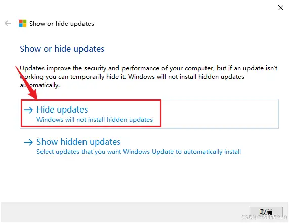 下载微软官网提供的「Show or hide updates」工具,临时隐藏受影响更新补丁推送安装。