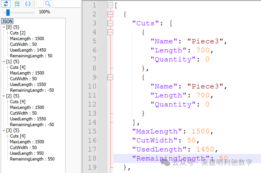 ) { "MaxLength" : 1500 , "CutWidth" : 50 , "TargetSizes" : [ { "Name" : "片段1" , "Length" : 200 , "Quantity" : 8 } , { "Name" : "片段2" , "Length" : 500 , "Quantity" : 4 } , { "Name" : "片段3" , "Length" : 700 , "Quantity" : 2 } ] }