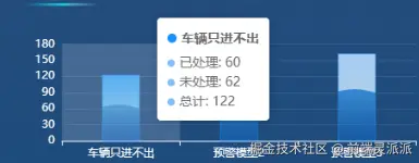 { name: "车辆只进不出", processed: 60, unprocessed: 62, total: 122 },