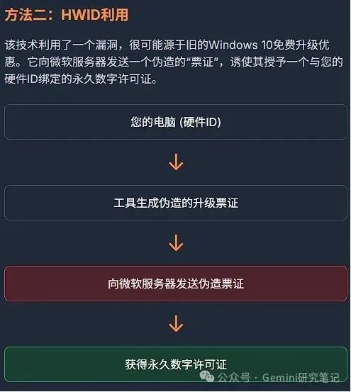 HWID激活工具(如MAS中的HWID Gen)所利用的,很可能是微软激活体系中一个历史遗留的、与免费升级政策相关的漏洞。虽然其确切的内部机制是微软的商业秘密,但其工作原理可以推断如下:
