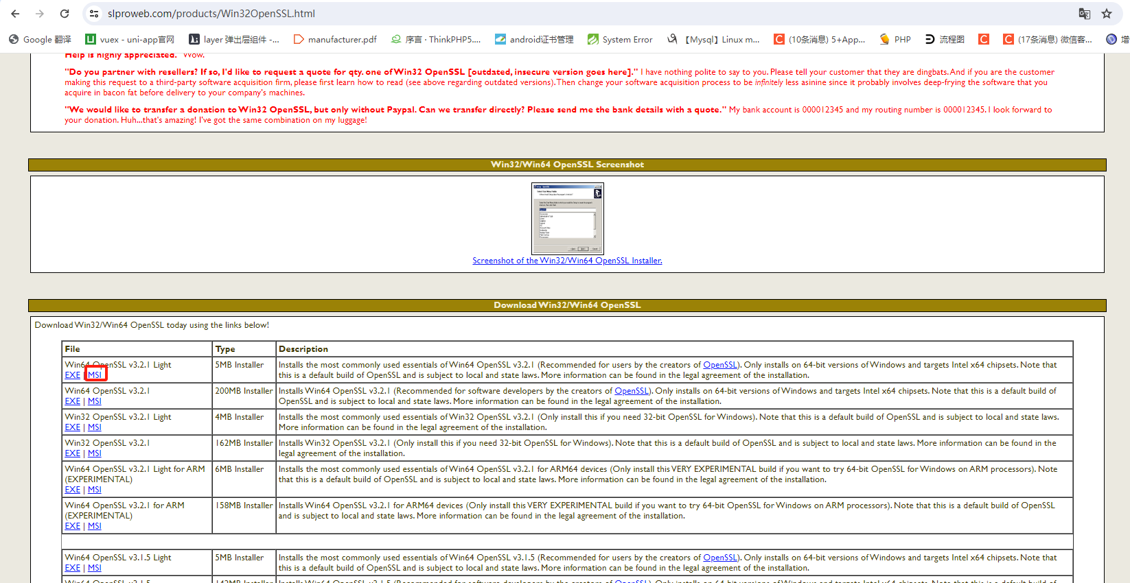 安装方法步骤一前往网站下载:Win32/Win64 OpenSSL Installer for Windows - Shining Light Productions 轻量级版本,选择Light即可。 下载后直接运行,点击下一步,完成安装,需要记住安装位置。 步骤二安装完毕后需要设置环境变量才可以使用, 默认安装位置为:C:\Program Files\OpenSSL-Win64 步骤三设置环境变量后,在命令行中输入 openssl version 查看是否可用。 转自https://www.cnblogs.com/zhangyouwu/p/18082552 该文章在 2025/9/1 8:49:10 编辑过 |