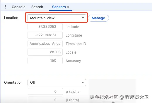 一栏中,选择 “Mountain View”(美国山景城),即北美西海岸时区: