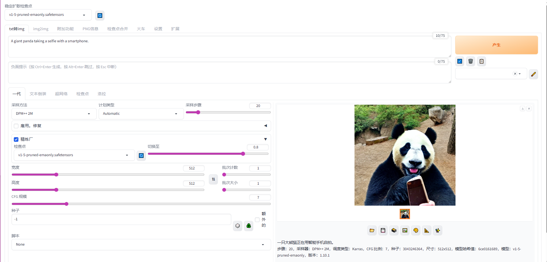 搞定,收工。 最后一句:如果你的电脑还不错,GPU16G或者更大,可以试试:stable-diffusion-xl,画质更高(需要注意的是使用sd_xl模型是不需要配置VAE的,在设置里面将VAE设置为NONE,不然反而会降低画质)。 转自https://www.cnblogs.com/cj8988/p/18976662 该文章在 2025/10/13 8:53:26 编辑过 |