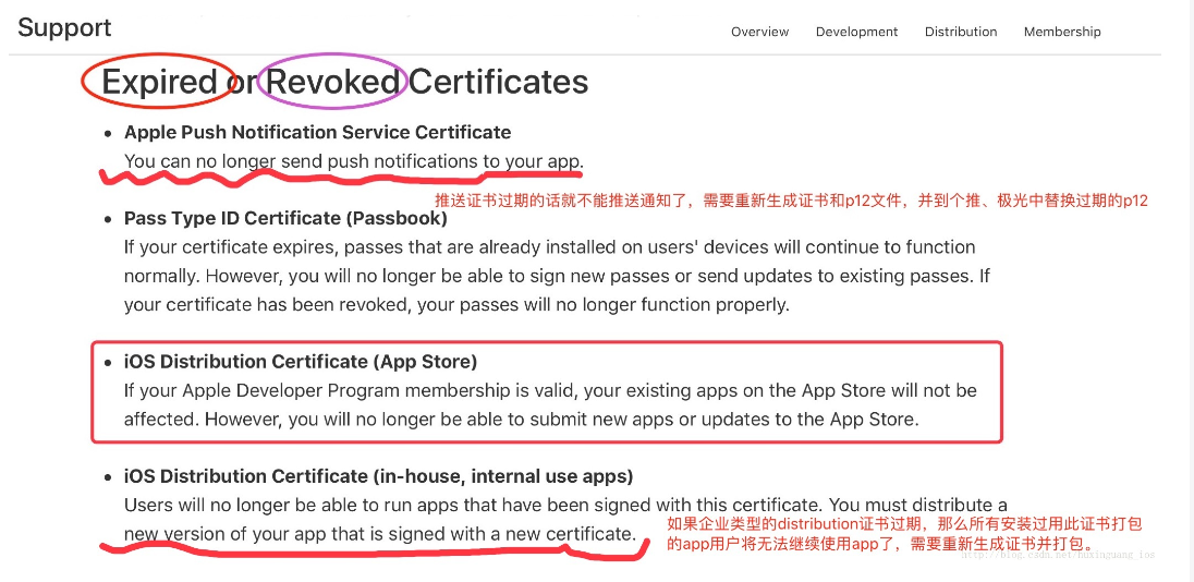 iOS distribution发布证书过期或者被手动revoke了app会被下架吗?