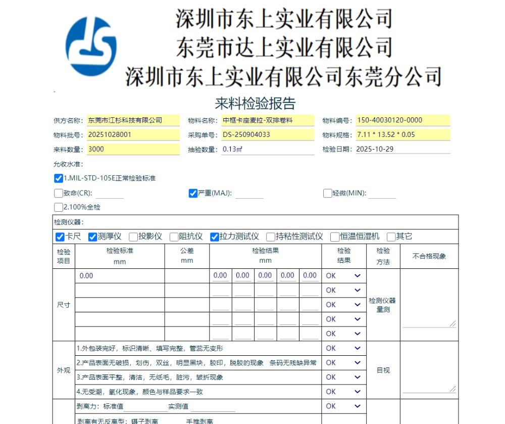 然后点中一条要做来料报告的物料信息,再点击新增来料报告按钮